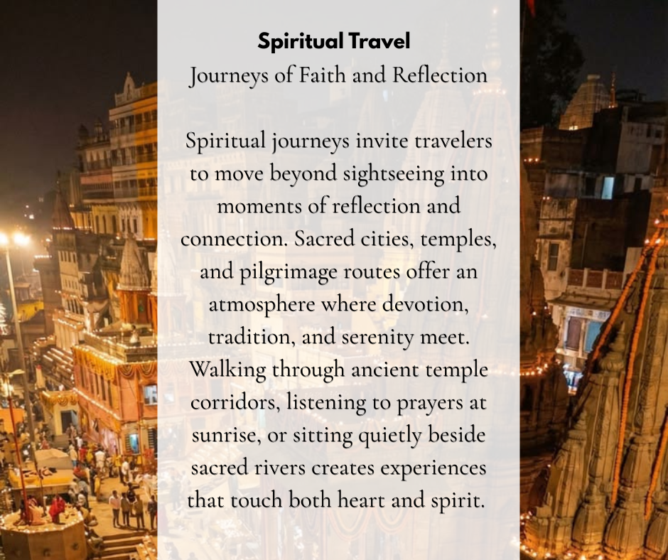 Explore the most sacred and beautiful spiritual destinations across India with Matrusri Travels. Experience divine temples, rich traditions, and peaceful surroundings that inspire devotion and inner peace. Every journey is carefully planned to give you a comfortable and memorable pilgrimage.